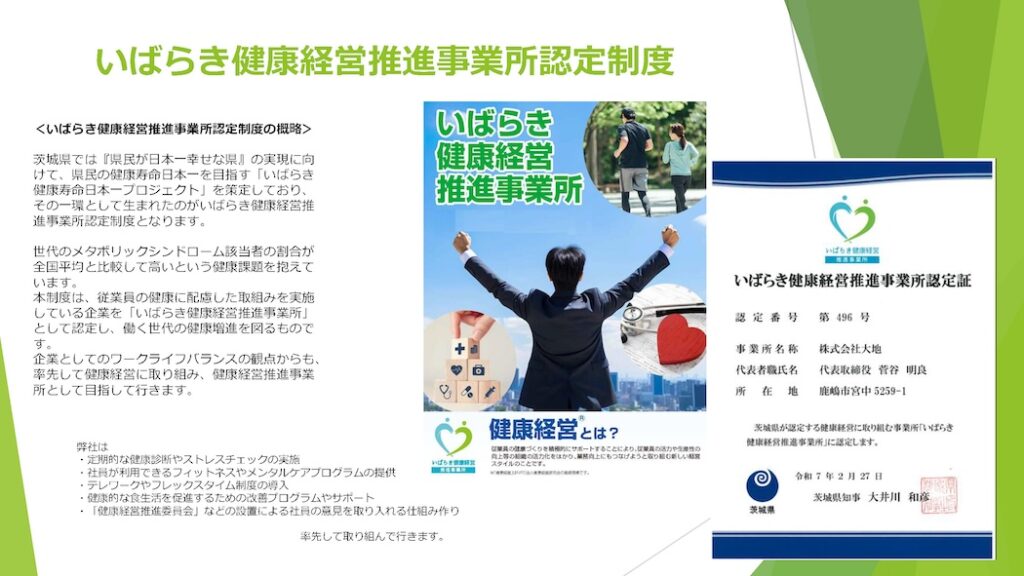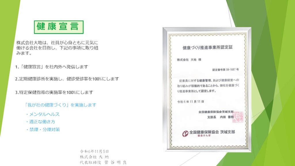 当社は、社員が心身ともに元気に働ける会社を目指しております。